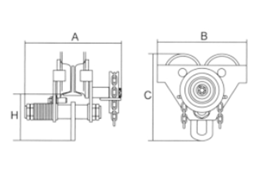 GCL系列單軌小車用途:廣泛地適用于工廠、礦山、碼頭、倉庫、建筑工地等,單軌小車用于安裝機器設備,吊運貨物的場合,單軌小車尤其適用于無電源地點的作業。